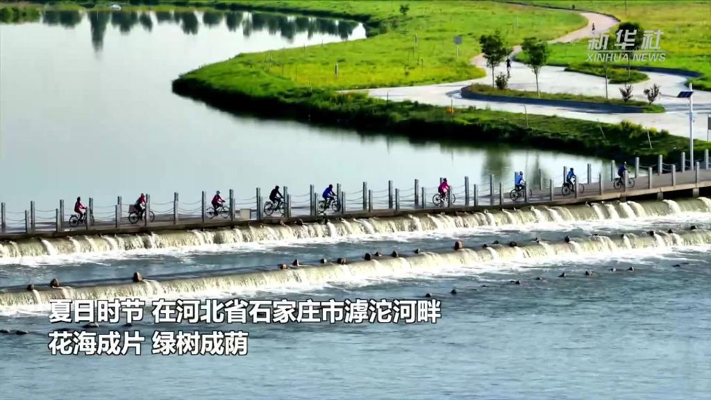夏日时节,在河北省石家庄市滹沱河畔,花海成片,绿树成荫。这里水清草美、群鸟蹁跹、游人如织……在晨光和暮色映衬下,犹如一幅五彩斑斓的风景画卷。