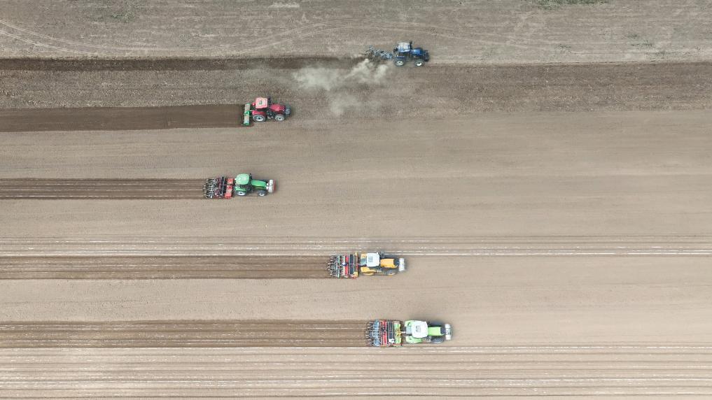 不负好春光,春种正当时。近日,在河北省沧州市东光县大运河畔李通判村千亩花生种植基地,装有北斗定位系统的深松机、旋耕机、播种机等农用机械轮番上阵,旋耕、播种、施肥、打药、覆膜等工序一气呵成,田间地头一派繁忙景象。