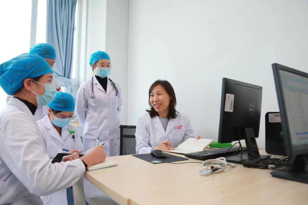 北京儿童医院肾病科副主任周楠在保定院区与医护人员一起交流探讨。(受访者供图)