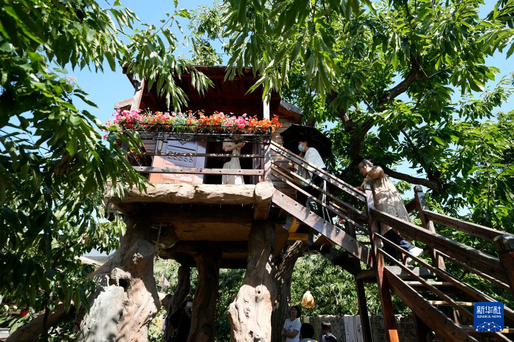 6月29日,游客在河北省迁西县汉儿庄镇一处民宿休闲。