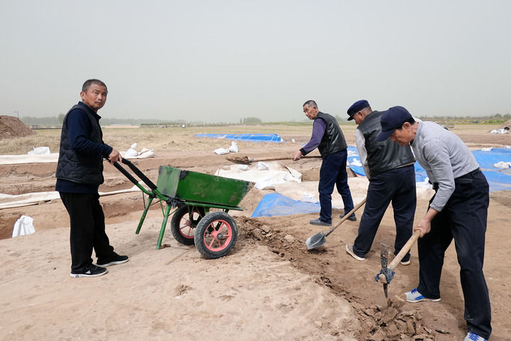 图为考古人员正在邺城遗址挖掘古城墙。新华社记者 范世辉 摄