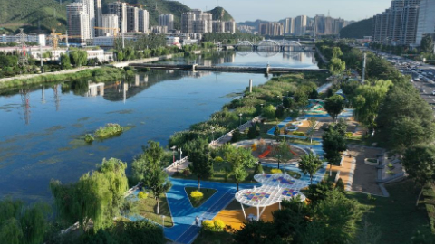 这是承德市双桥区一处“口袋公园”(9月13日摄,无人机照片)。