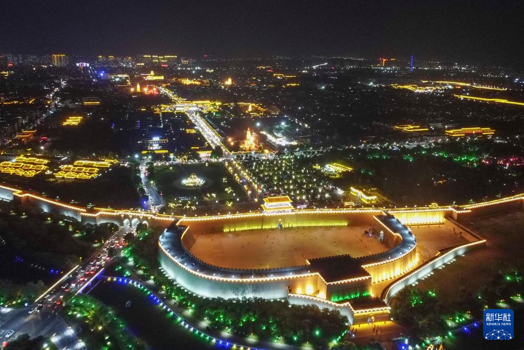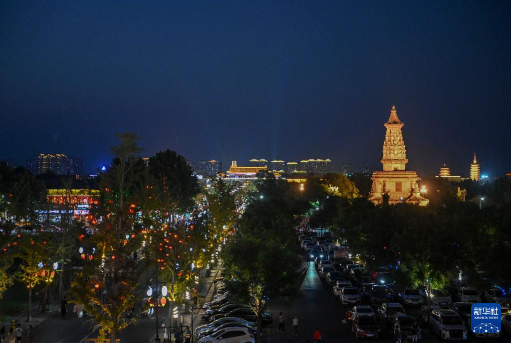 这是7月17日晚拍摄的正定古城夜景(无人机照片)。