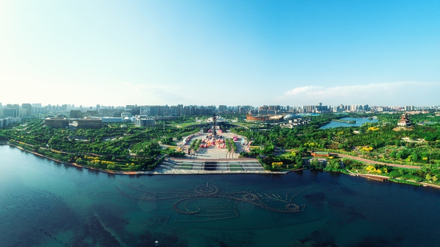 航拍唐山南湖,景色秀丽。视觉中国 图