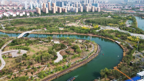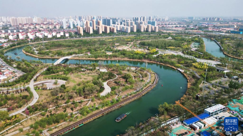 4月16日,大运河生态修复展示园俯瞰(无人机照片)。(受访单位供图)
