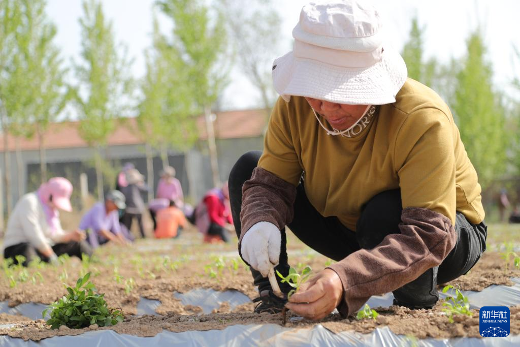 4月16日,沧州市东光县东光镇金庄村农户在种植甜叶菊。(受访单位供图)