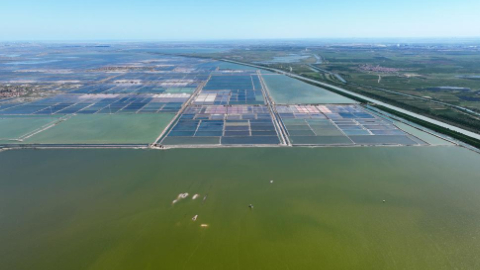 这是9月13日拍摄的河北省沧州市海兴县小山乡养殖滩涂(无人机照片)。