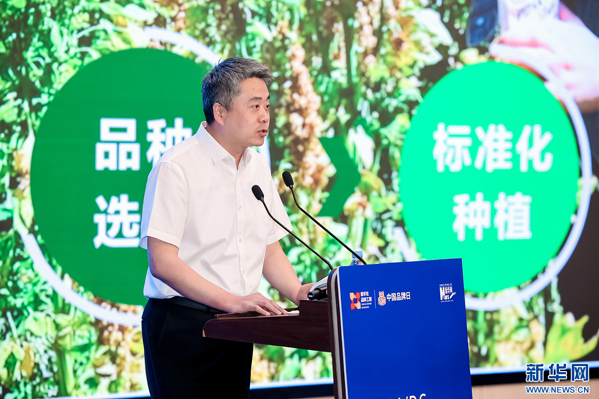 沽源县委常委、宣传部部长谷建辉在大会上推介“沽源藜麦”区域公用品牌。新华网 发