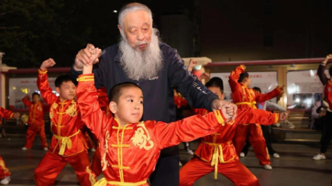 随着夜幕降临,河北省沧州市丽景社区的院落变得热闹起来。十几个孩子接连攥拳、勾腿、翻跟头,跟着师傅郭雪迎学习清招短拳。75岁的郭雪迎,坚持29年义务教授武术,将习武理念传递给近千名青少年。