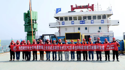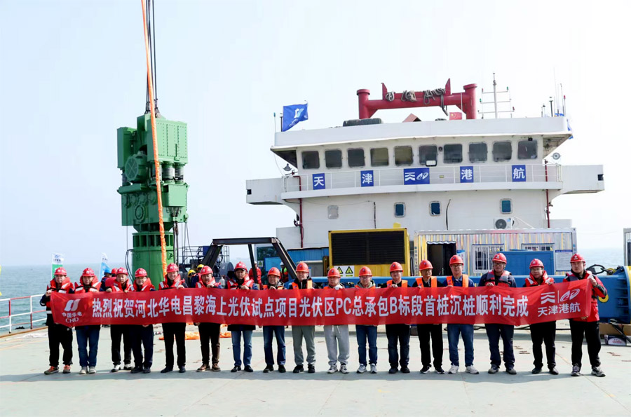 河北华电昌黎海上光伏试点项目顺利完成首桩沉桩工作