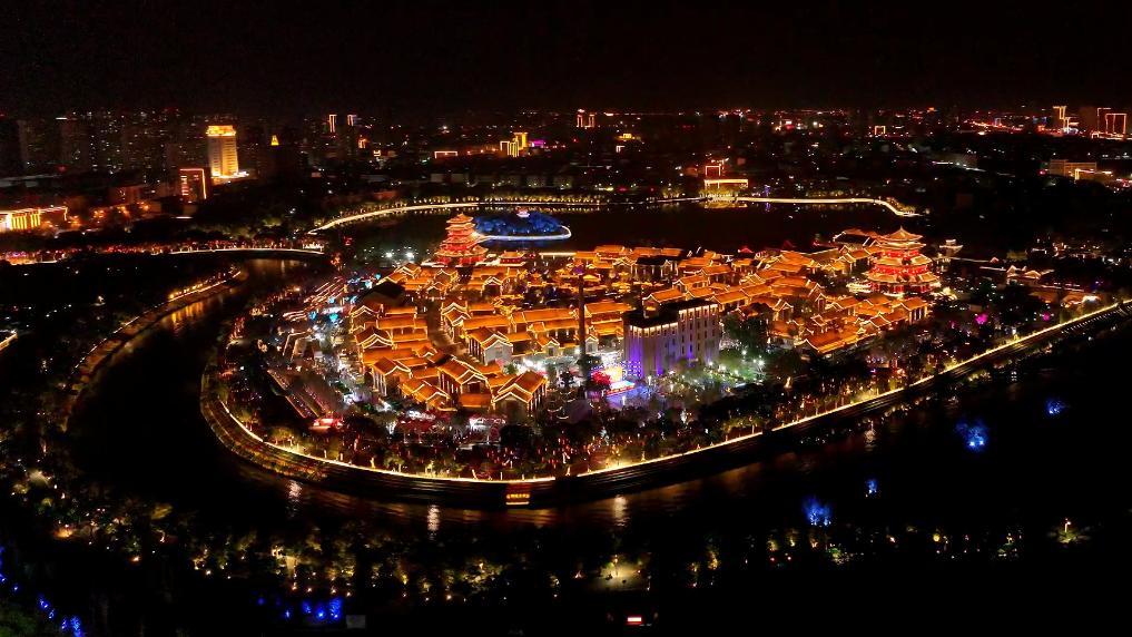 在南川楼历史文化街区,古建筑临河而立,游客络绎不绝,人们品月饼、赏花灯、汉服巡游,和家人赏古城夜色,在多彩活动中体验传统节日习俗。
