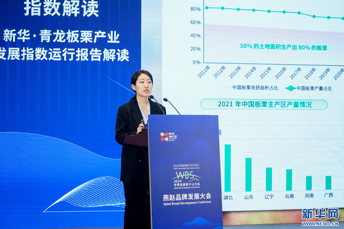 中国经济信息社新华指数研究院高级研究员孙瑞涓在大会上解读新华·青龙板栗产业发展指数运行报告。新华网发