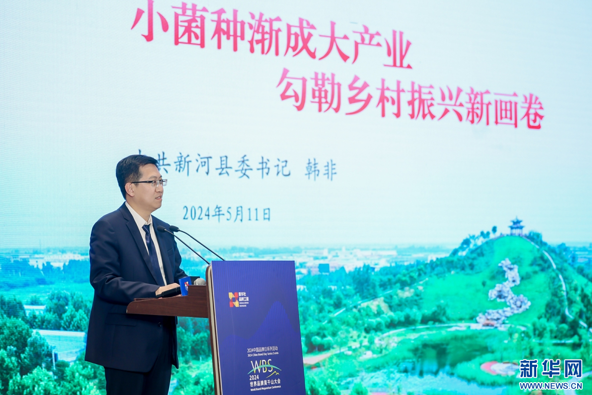 新河县委书记韩非在大会上作品牌推介。新华网发