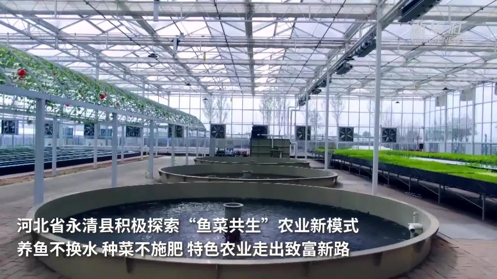 河北省永清县积极探索“鱼菜共生”农业新模式,养鱼不换水、种菜不施肥,特色农业走出致富新路。