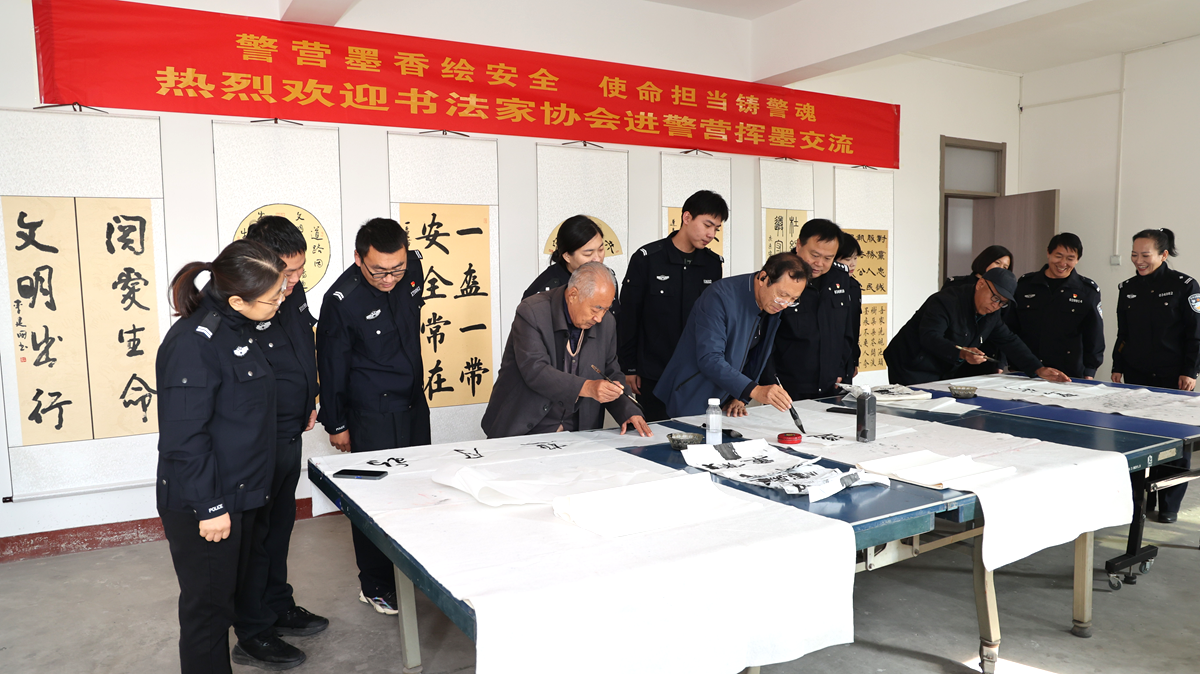 近日,河北省新河县公安局交警大队联合新河县书法家协会,开展了“警营墨香绘安全 使命担当铸警魂”书法创作交流活动,让民辅警们在繁忙的工作之余放松身心、陶冶情操。(李世强 新河县融媒体中心供稿)