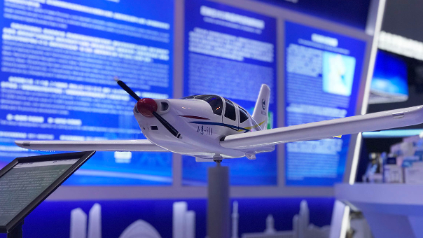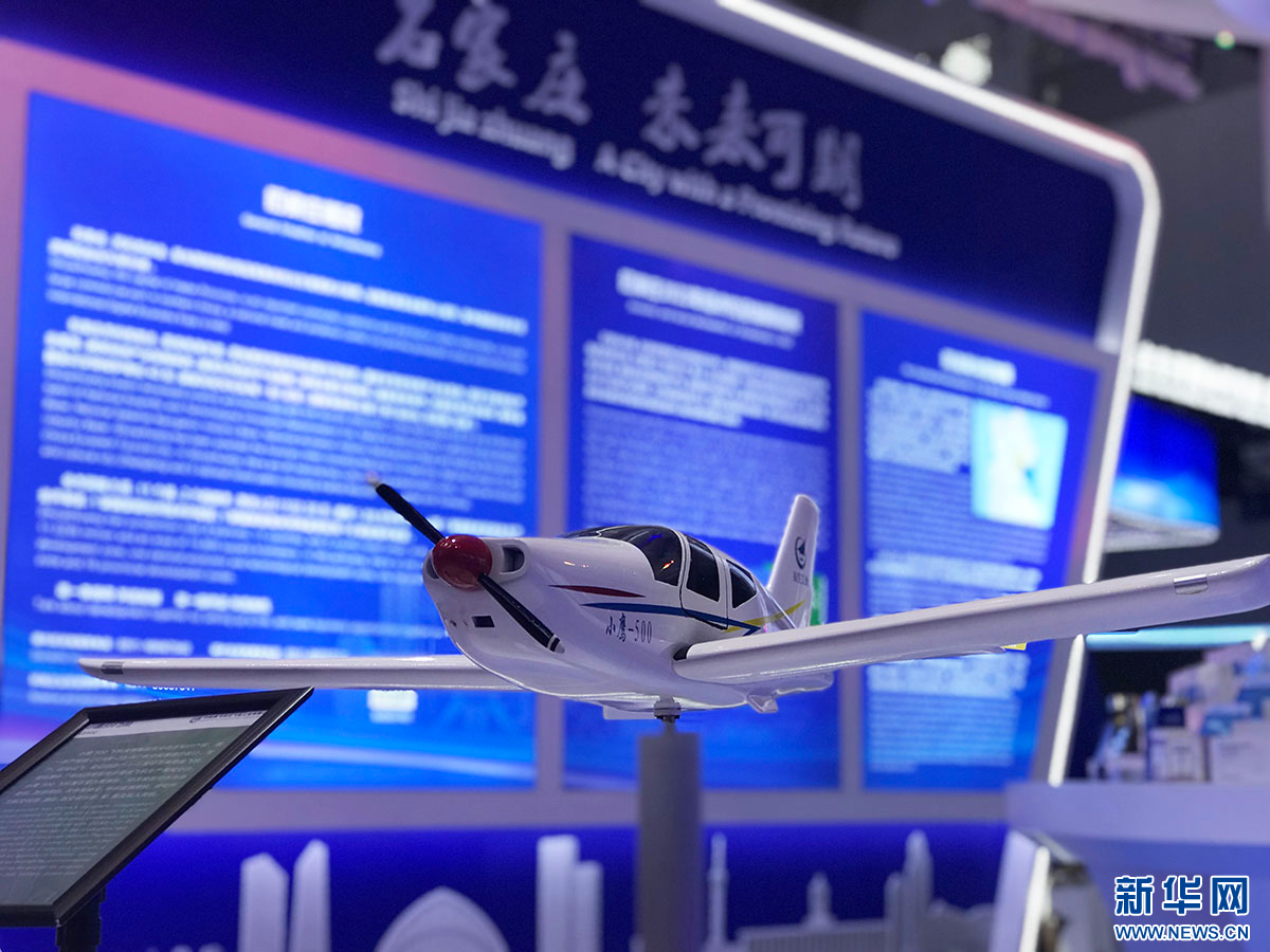 石家庄展区内展示的一架小鹰500飞机模型。高丽摄