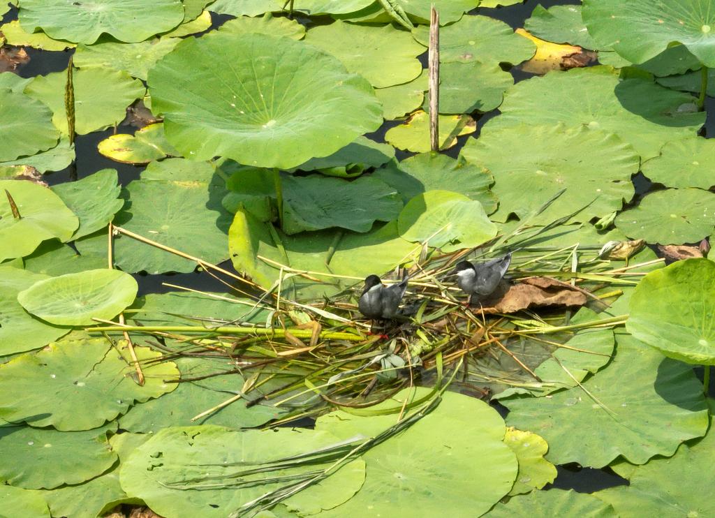 须浮鸥在衡水湖衔草筑巢。(受访单位供图)