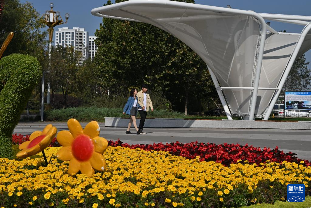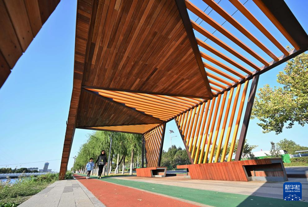 10月15日,市民从唐山市海港经济开发区城市休闲驿站走过。