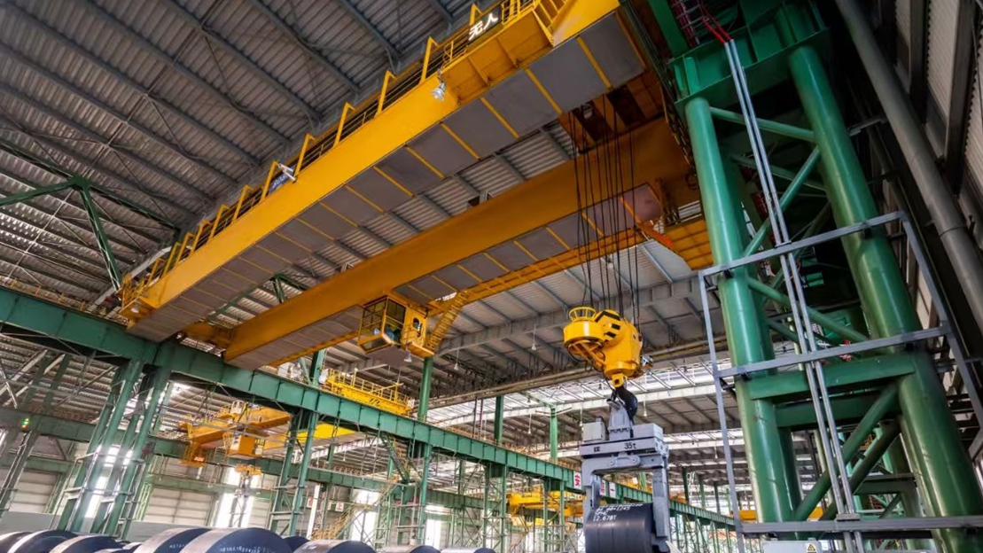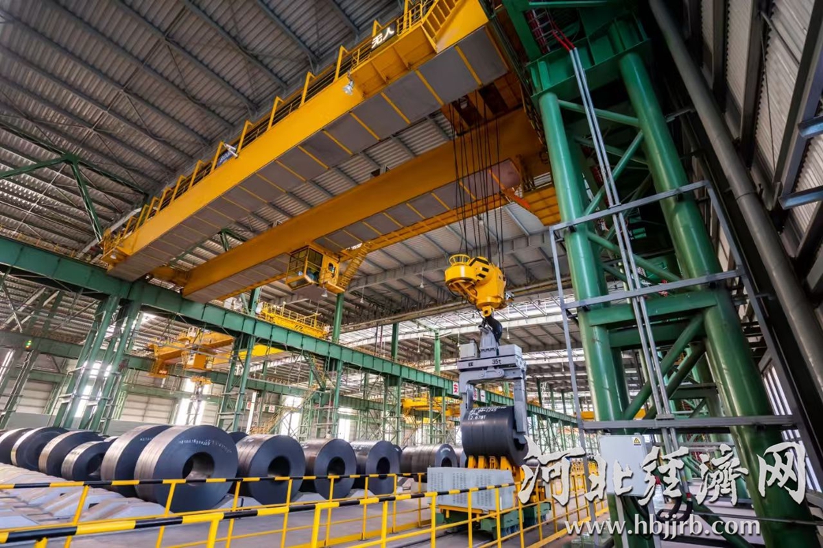 9月9日,首钢京唐公司mccr钢卷库无人天车正在吊运钢卷。通讯员张鹏飞摄