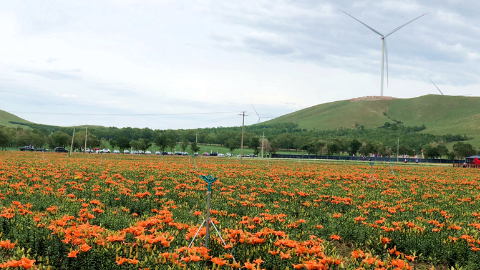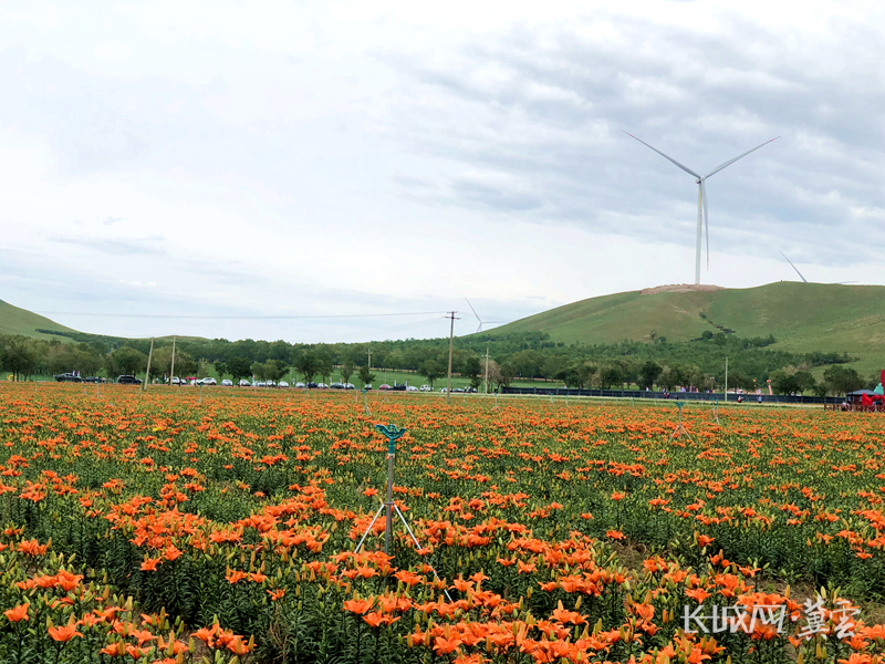 大石砬村一年一个新台阶,精心打造成花卉作物种植基地,盛夏时节,盛开的百合花、金莲花、万寿菊、葵花、油菜花成为草原天路脚下花田草海。