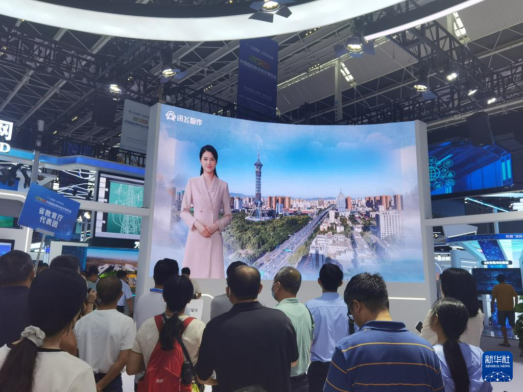 9月8日,参观者在本届数博会上与科大讯飞数字主持人“小颜”互动。新华社记者 冯维健 摄