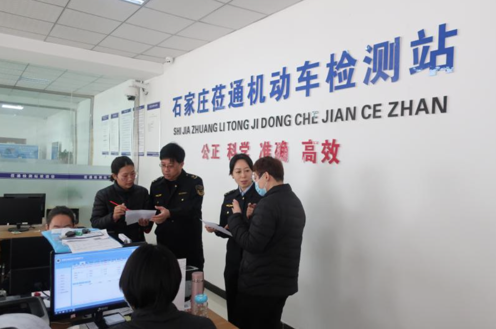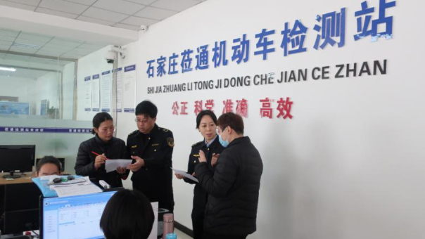 石家庄高新区市场监管局工作人员到辖区机动车检测站开展工作。
