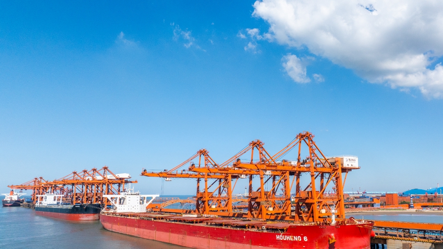 9月6日,河北港口集团曹妃甸矿石码头一片繁忙景象。(河北日报资料片)记者赵杰摄