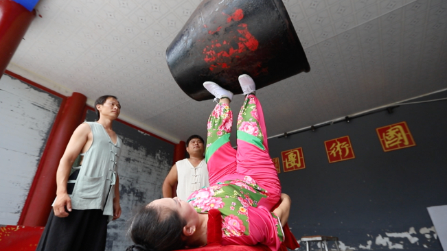 吴桥杂技包含十几个表演门类,蹬技是重要表演门类之一,其中,蹬大缸是蹬技节目表演中的压轴大戏,久演不衰。(毛鹤然、贾玉龙)