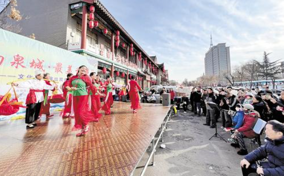 1月26日,在邢台市元街年货大集,曹演庄社区居民跳起欢快的《丰收舞》。 河北日报记者 王永晨摄