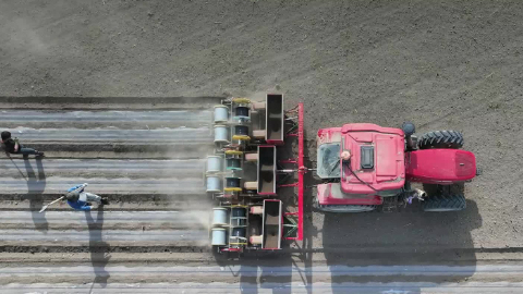 近日,在河北省沧州市中捷产业园区的盐碱地里,装有北斗导航系统的播种机在田间作业,精量播种、地膜铺设等工序一气呵成。近年来,中捷产业园区积极推进盐碱地综合利用,不断调整种植结构,引入新技术,助力盐碱地丰产丰收。(贾玉龙、崔秩恺)