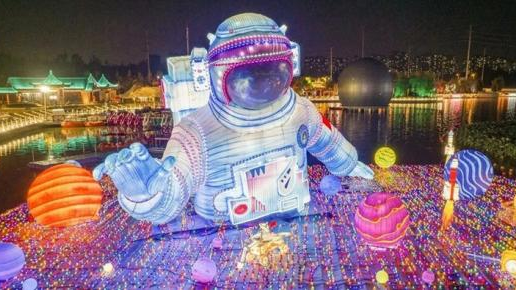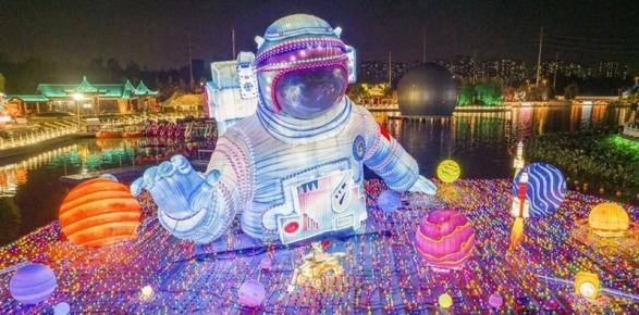 9月23日,廊坊千灯会“未来次元”区域里的机器人灯组流光溢彩。图片来源:河北日报