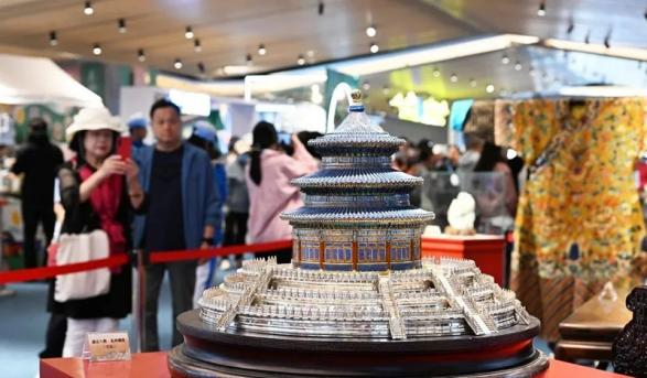 市民在第八届河北省旅游产业发展大会生活美学市集“燕京八绝”展台前参观。图片来源:河北日报