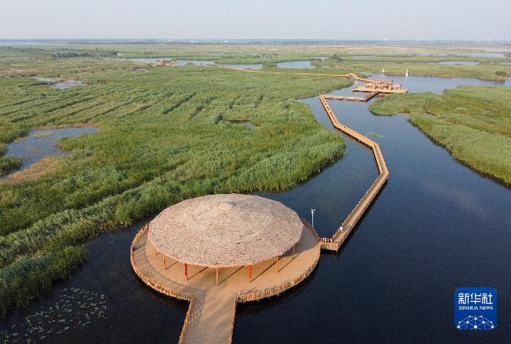 这是7月19日拍摄的白洋淀木栈道(无人机照片)。新华社记者郝建伟 摄