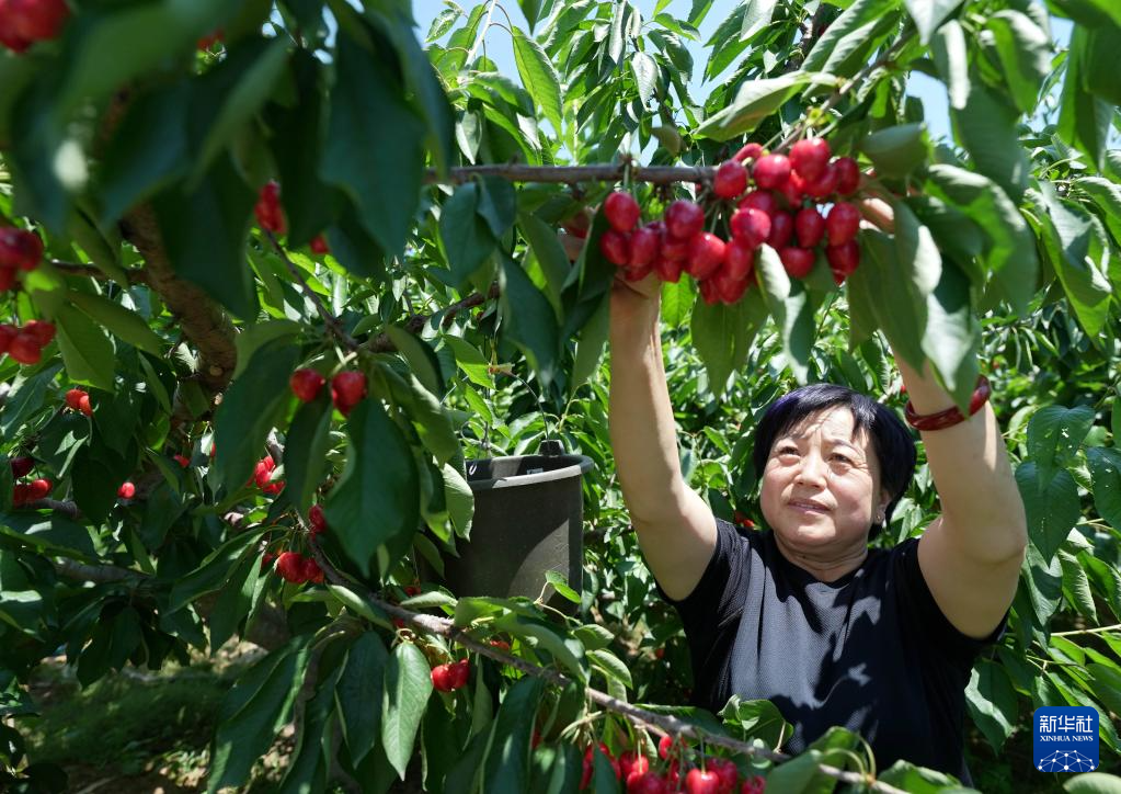秦皇岛市山海关区石河镇户远寨村果农在自家果园采摘樱桃。新华社记者 杨世尧 摄