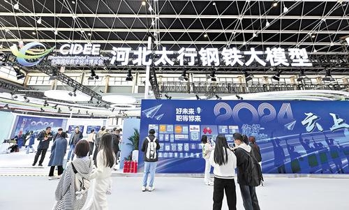 10月24日,2024中国国际数字经济博览会在石家庄(正定)国际会展中心开幕。图为观众在河北太行钢铁大模型展区参观。记者 史晟全 摄
