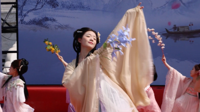 日前,在河北省沧州市南川老街,身着精美汉服的“花神”翩然起舞,献上一场别开生面的视觉盛宴。沧州市通过举办“花朝节”活动,展示大运河畔自然风光与文化底蕴。(孙月玲、刘冲、史飞飞)