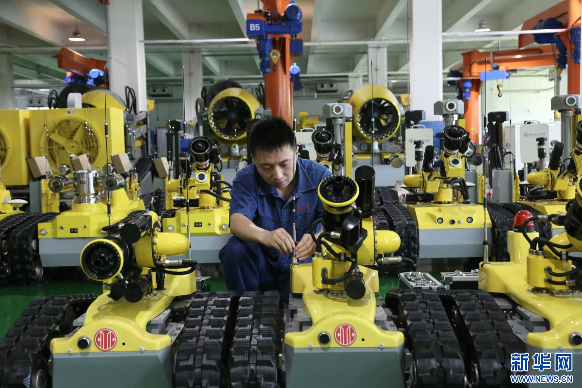 中信重工开诚智能装备有限公司技术人员在调试消防机器人。刘梓涵 摄
