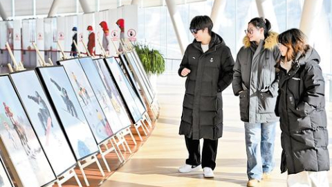 顶峰俱乐部里正举办“画语·跃动雪如意运动”画展。画家洪阿林创作的一幅幅冰雪题材油画,吸引了不少游客驻足观看。临近中午,还有游客在顶峰俱乐部里的顶峰德式餐厅边吃春节套餐边看画展,在品尝美食的同时感受浓郁的冬奥氛围。
