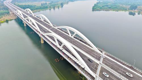 日前拍摄的厂通路潮白河大桥。该桥今年9月29日全线通车,是京津冀一体化发展的重点项目。记者史晟全 摄