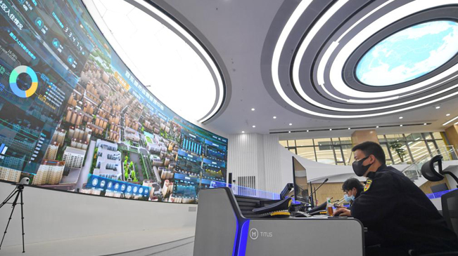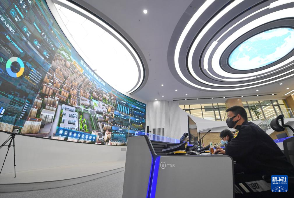 雄安新区容东城市运营管理中心监管平台。新华社记者 朱旭东 摄