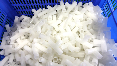 看上去洁白无瑕,摸起来温润如玉。您能想到,这个小小的塑料管件也是盐山管道装备中的一种吗?可别小看它,这一小筐产品能卖到上万元。