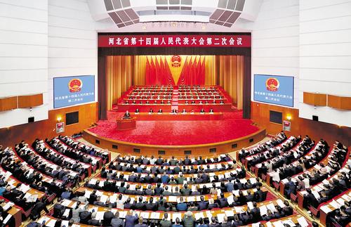 1月21日上午,河北省第十四届人民代表大会第二次会议在省会河北会堂开幕。这是会议现场。河北日报记者 赵杰摄