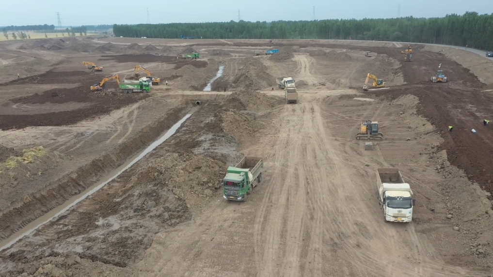 在河北省霸州市王庄子镇东淀蓄滞洪区淀内沟渠治理工程施工现场,大型机械设备正开足马力进行河渠清淤作业,机器轰鸣声此起彼伏。