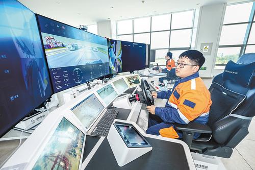 “作为操作员,我们从户外搬进了办公室。”李凤亭说,唐山港京唐港区25号泊位,是河北省首个全自动、无人化集装箱码头,从集装箱装卸计划的调度、派发到执行,均已不需人工现场操作。北斗、4d毫米波雷达等融合定位技术,让智能平板运输车行驶起来灵活自如,走位、避障、绕行……安全有序,也缩短了装卸货物的时间。李凤亭所在团队有6个人,两人一班,就能控制着25台智能平板运输车24小时不间断作业。(记者 赵杰摄影报道)