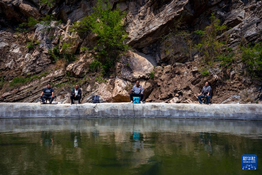 5月3日,游客在河北保定阜平县骆驼湾村垂钓。新华社记者 邹尚伯 摄