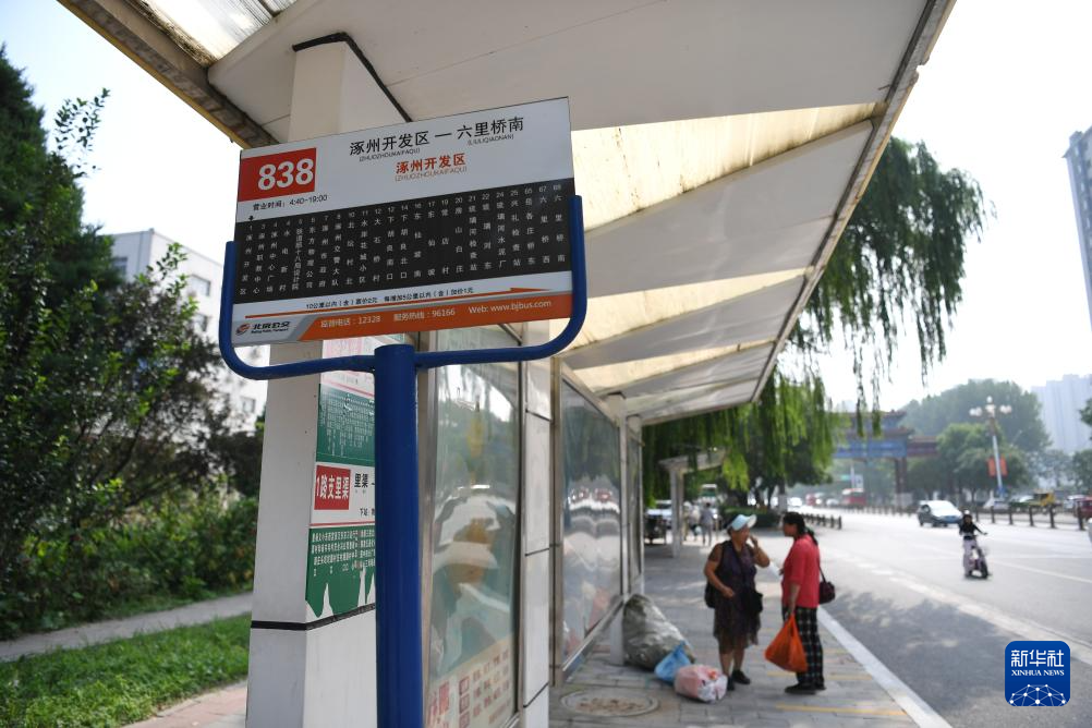 8月9日,乘客在北京公交838路涿州开发区站候车。