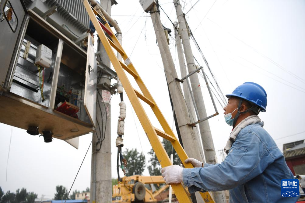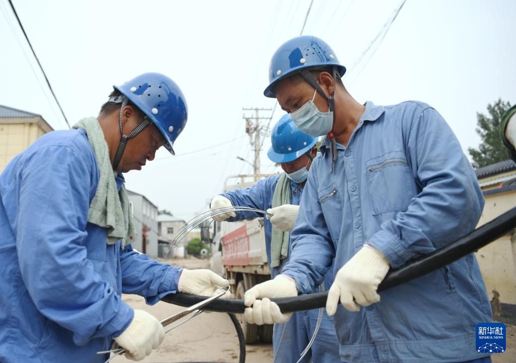 8月11日,邯郸供电公司抢修人员在涿州市码头镇向一村抢修电力设施。