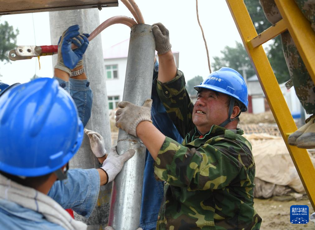 8月11日,邯郸供电公司抢修人员在涿州市码头镇向五村抢修电力设施。