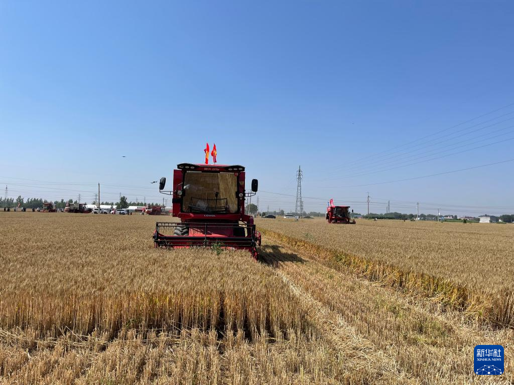 6日,河北省麦收“第一镰”在邯郸市魏县展开,东张岗村麦田里多台同型号的小麦联合收割机在对应地块进行收割,最终,农机手史红海的小麦机收损失率为0.31%,获得冠军。