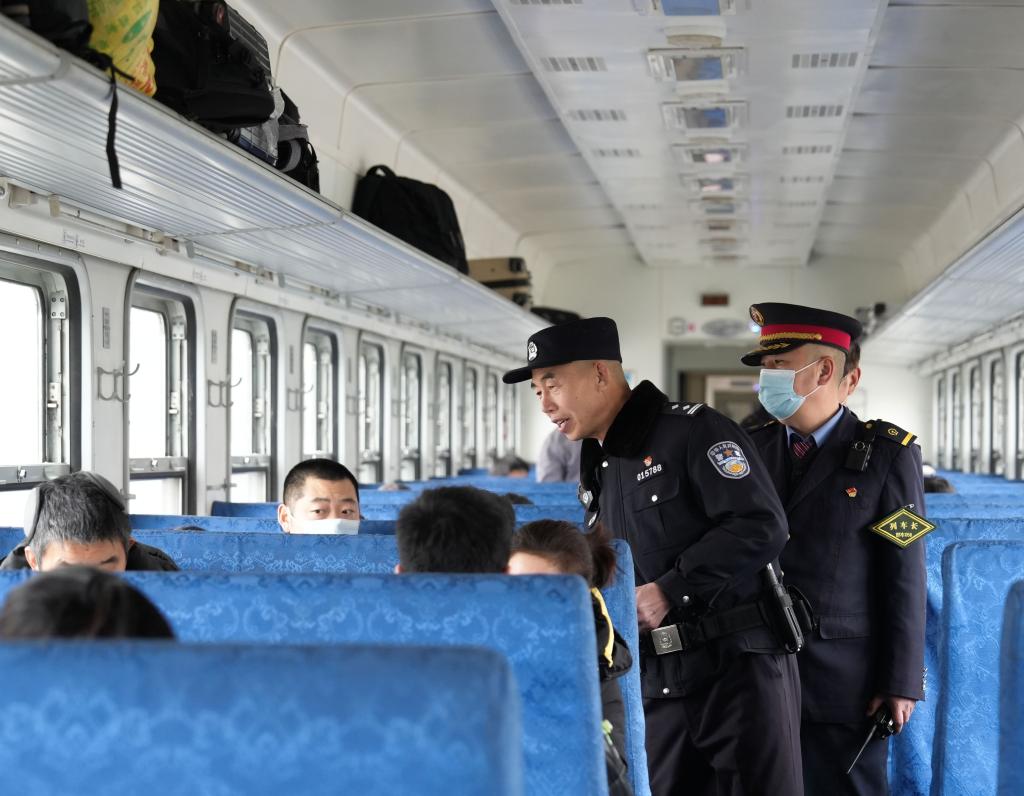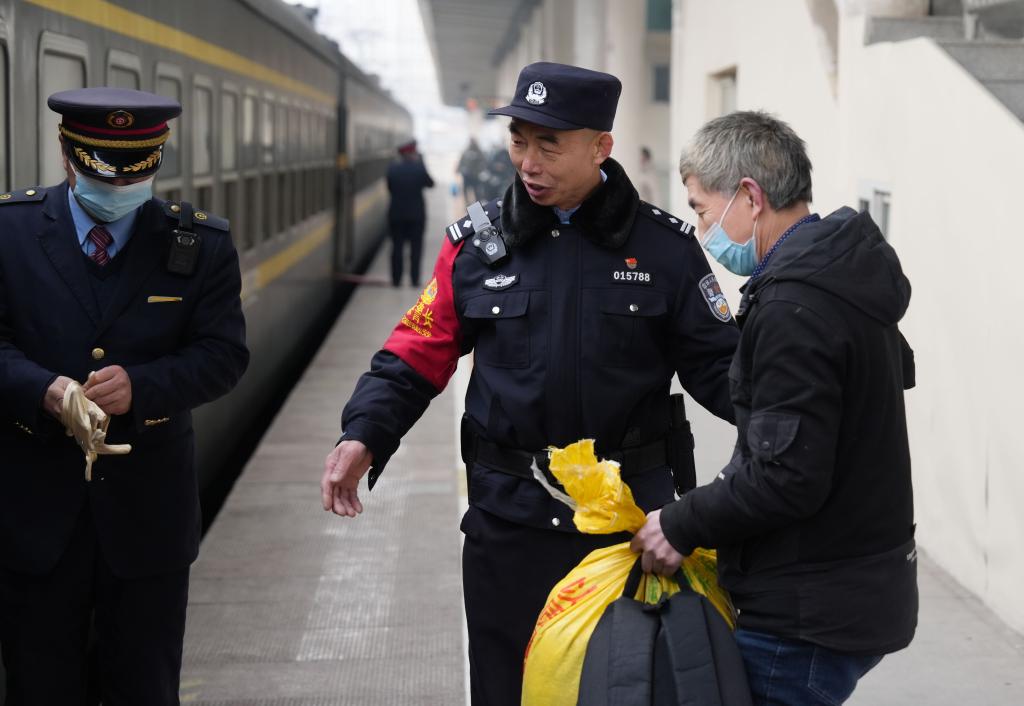 今年春运,北京铁路局石家庄铁路公安处邯郸站派出所民警王海平一如往常,踏上守护这辆列车的路途。每天吃过午饭,王海平随车出发,旅客们提着大包小包的行李陆续进站,他会引导登车,帮忙提拉行李,留意观察站台情况。